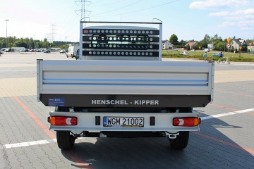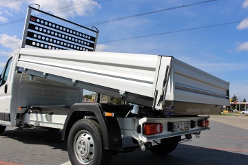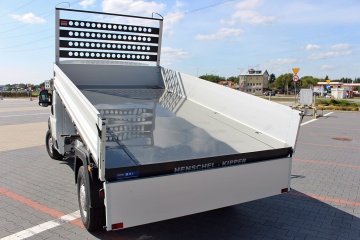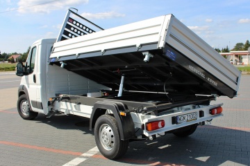 Zabudowa pozwala na transport materiałów sypkich np. piasku, żwiru, ziemi do max. 1084 kg, dzięki czemu poruszać się można autem na prawo jazdy kat. B. Do obsługi nie jest wymagane posiadanie uprawnień na podnośniki hydrauliczne.